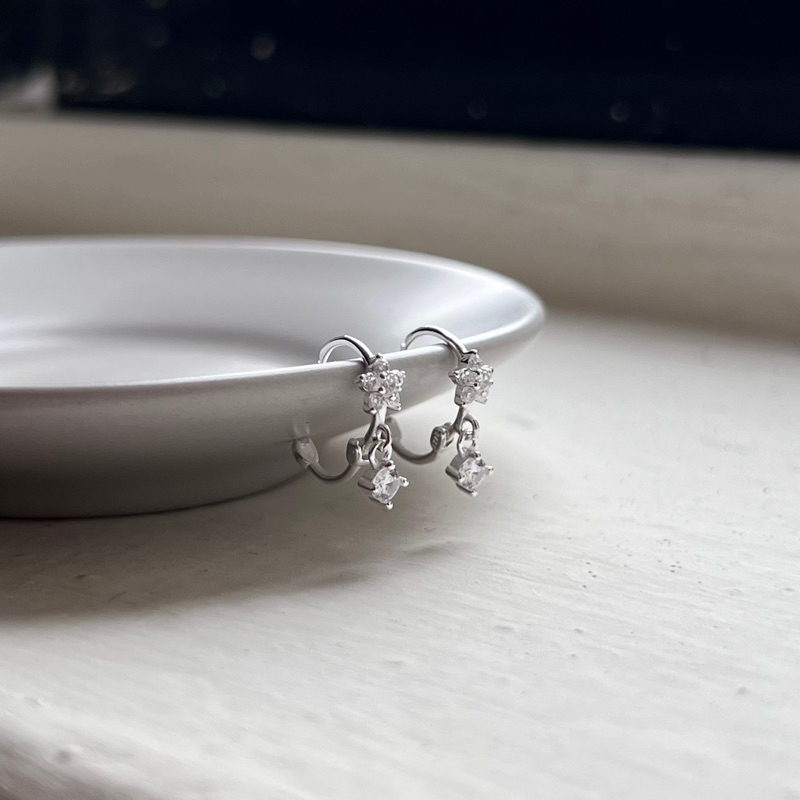 【Moonsee】純銀易扣-星星垂吊圓鑽