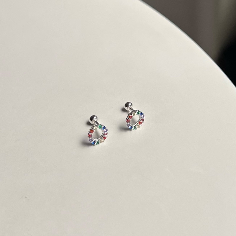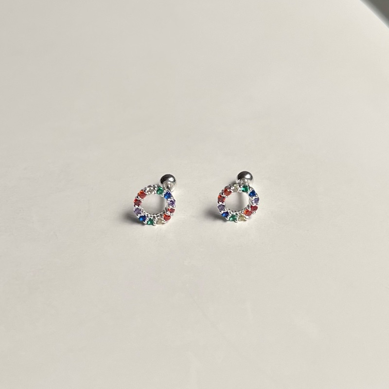 【Moonsee】純銀鎖珠款-彩虹花圈(單支)