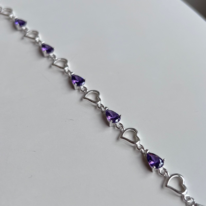 【Moonsee】純銀手鍊-空圈愛心紫水滴