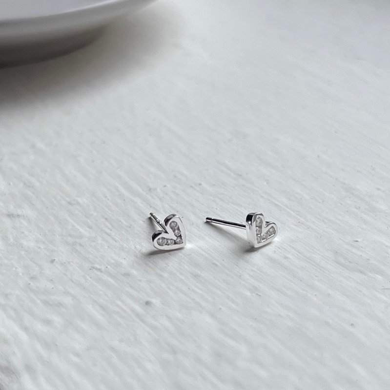 【Moonsee】純銀易扣-心跳雙鑽 適合耳骨配戴