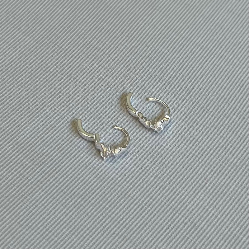【Moonsee】純銀易扣-心跳雙鑽 適合耳骨配戴