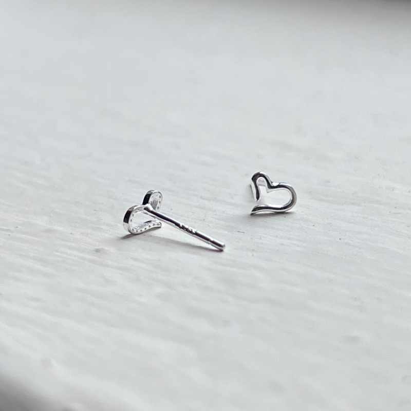 【Moonsee】純銀耳針-開口素面愛心