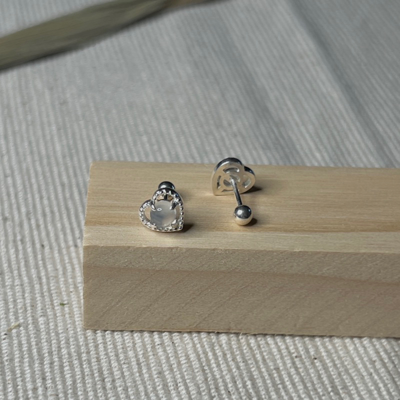 【Moonsee】純銀鎖珠-愛心寶石(單支)
