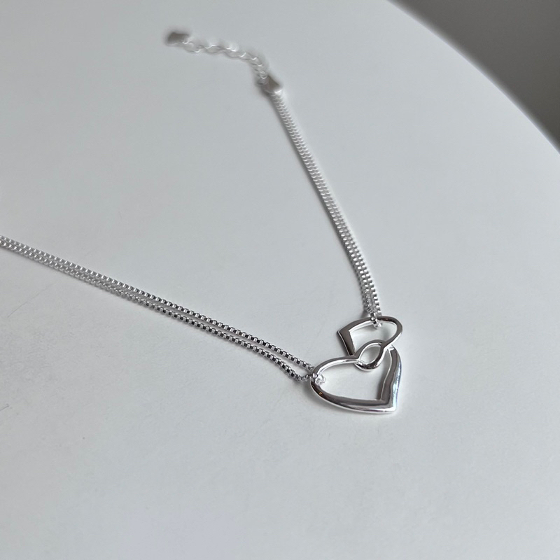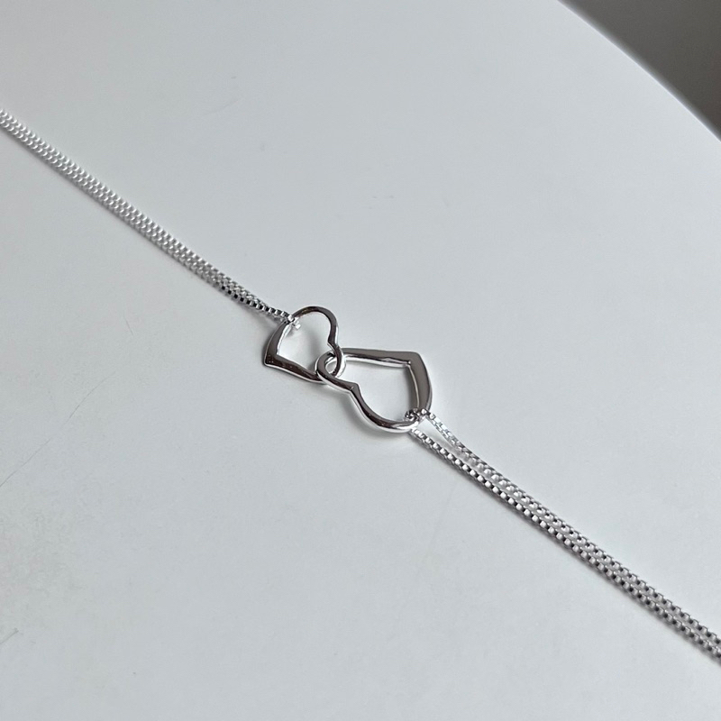 【Moonsee】純銀-大小愛心雙蛇鏈手鍊