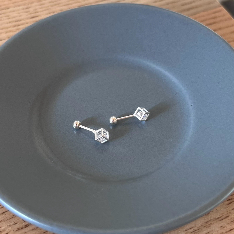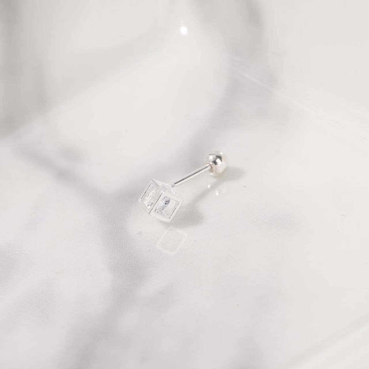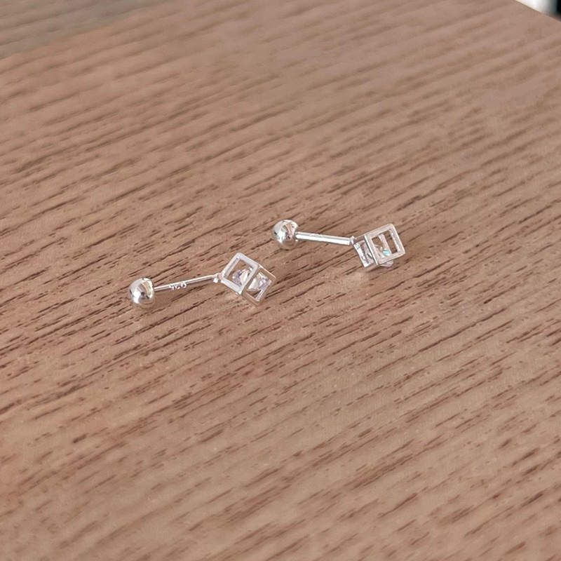 ▪ 商品名稱: 純銀鎖珠款-簍空方塊包鑽(單支)